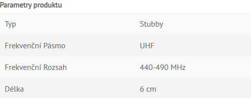 AN000351A01 Anténa UHF Stubby Ferrule je určená pro ruční radiostanice Motorola řady MOTOTRBO R7 a ION. Kmitočtový rozsah UHF 440-490 MHz.